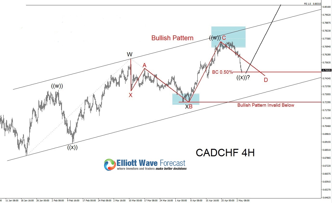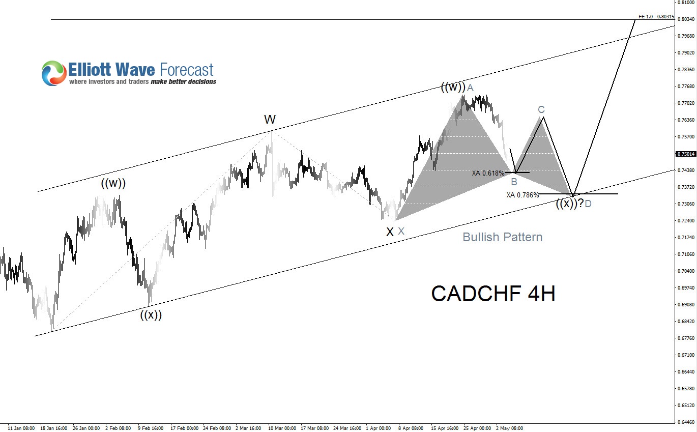 CADCHF has been moving higher since January 20/2016. It has been making higher highs and higher lows showing that it is trending to the upside. It is also showing an Elliott Wave WXY (Double correction) where we still need to see the 7th swing higher to complete Wave Y. In the charts below we will show other possible Bullish patterns together with an Elliott Wave count indicating that another swing higher for CADCHF is highly probable.