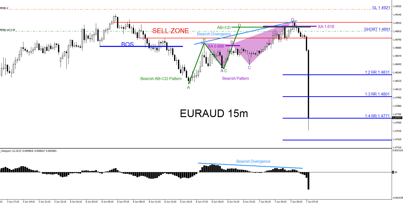 On June 6 2022 I posted on social media @AidanFX “ EURAUD : I will be watching the 1.4890 area for possible selling opportunities against 1.4920 stop loss and targeting the 1.4790-1.4760 area.“