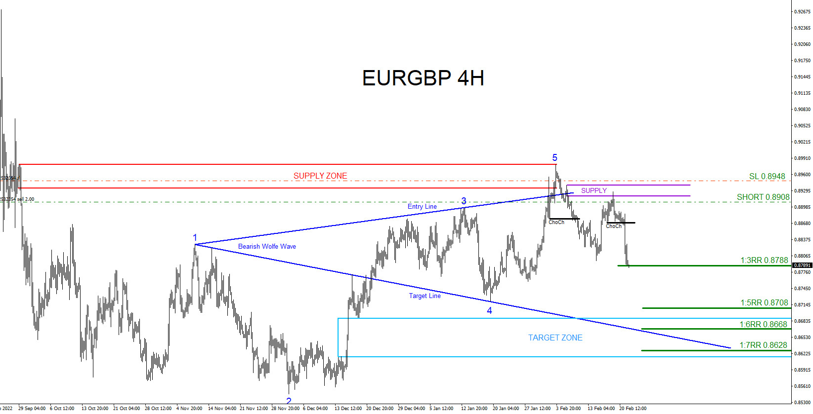 On January 10 2023 I published an article ” EURGBP : Trading Zones ” where I gave the area on which to look for selling opportunities. In the article I wrote “if price pushes higher to the supply zone (red) then watch possible selling opportunities against 0.8980 stops.”