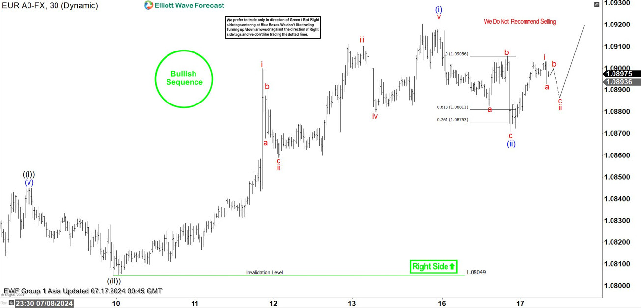 On July 17 2024, our members got the Asia update chart on EURUSD calling for the instrument to dip lower which would then be followed with a move higher. EURUSD was currently in bullish sequence and our charts clearly shows and advises for members to not sell and instead look for buys.