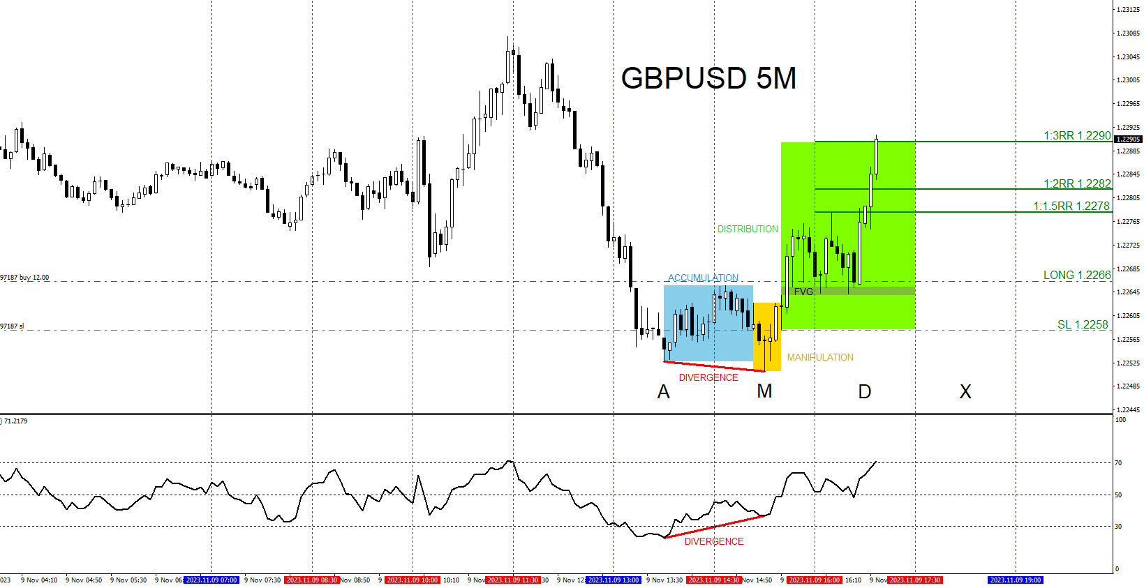 The accumulation, manipulation, distribution market pattern happens everyday in the markets. On November 9 2023 this pattern was visible on the GBPUSD pair during the New York session hours.