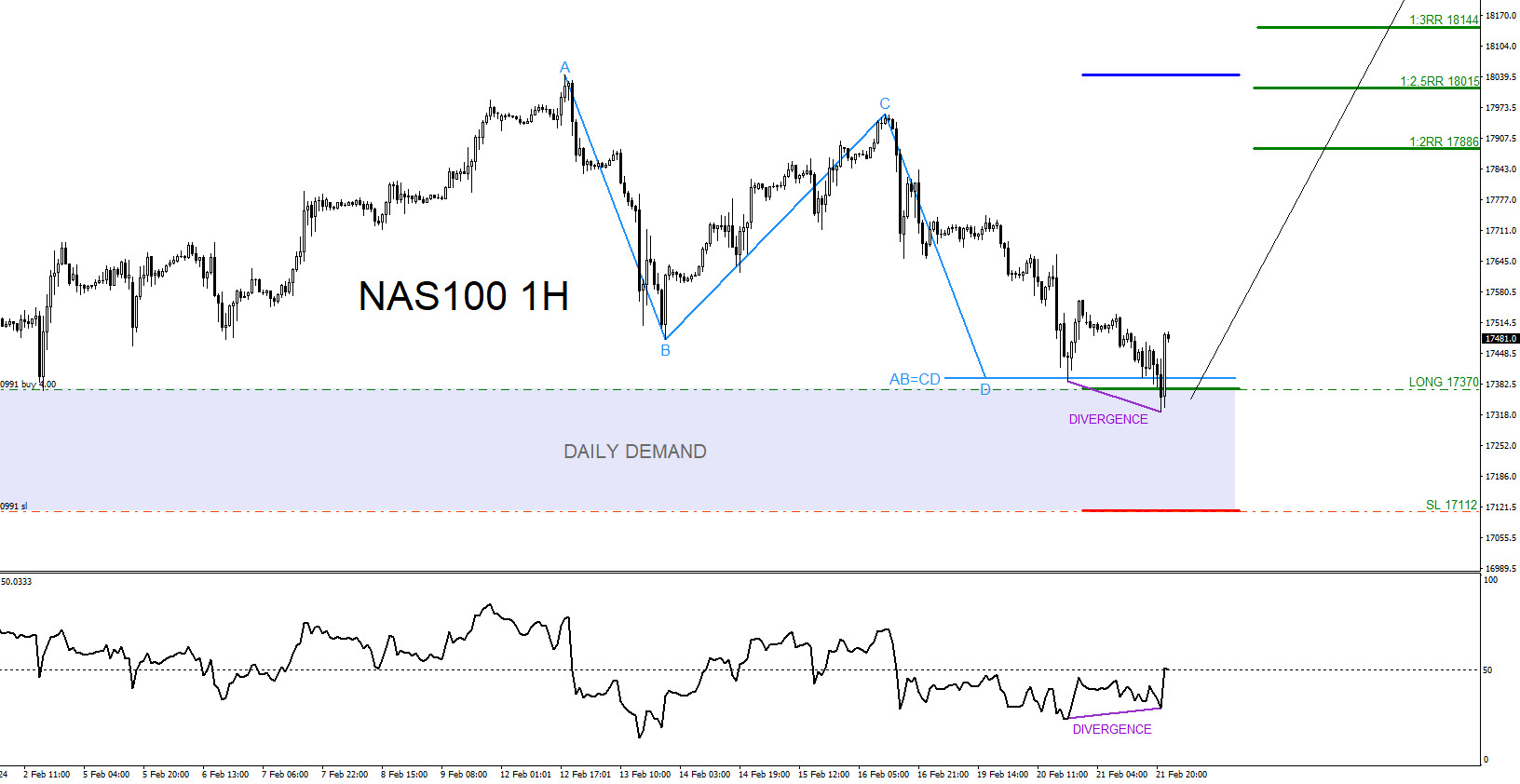 NAS100 1 Hour Chart February 21 2024 (Entry)