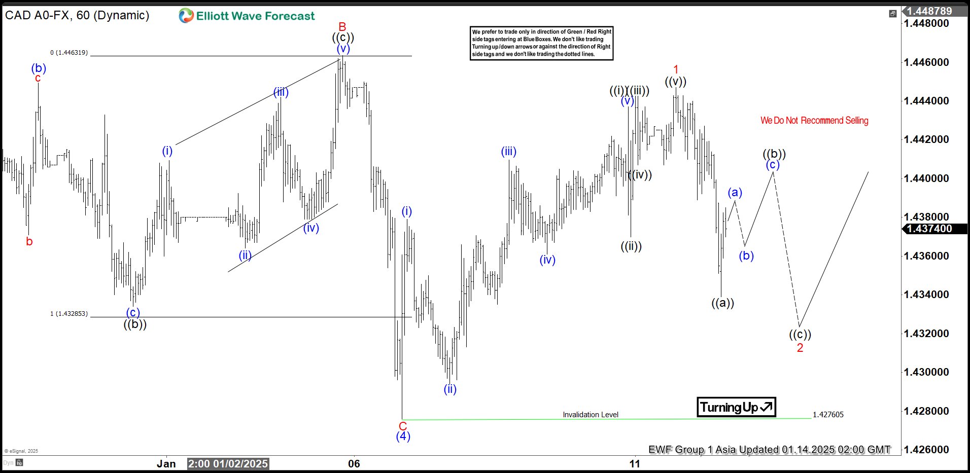 January 14 2025 we called for USDCAD to make another move higher to terminate wave ((b)). In the Elliott Wave count below we advised our members that the pair would push higher first followed by another extension lower.