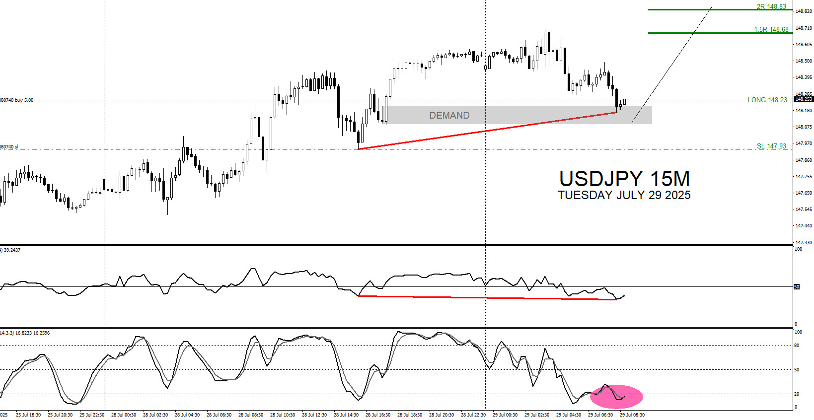USDJPY 15 Minute Chart July 29 2025 (Trade entry)