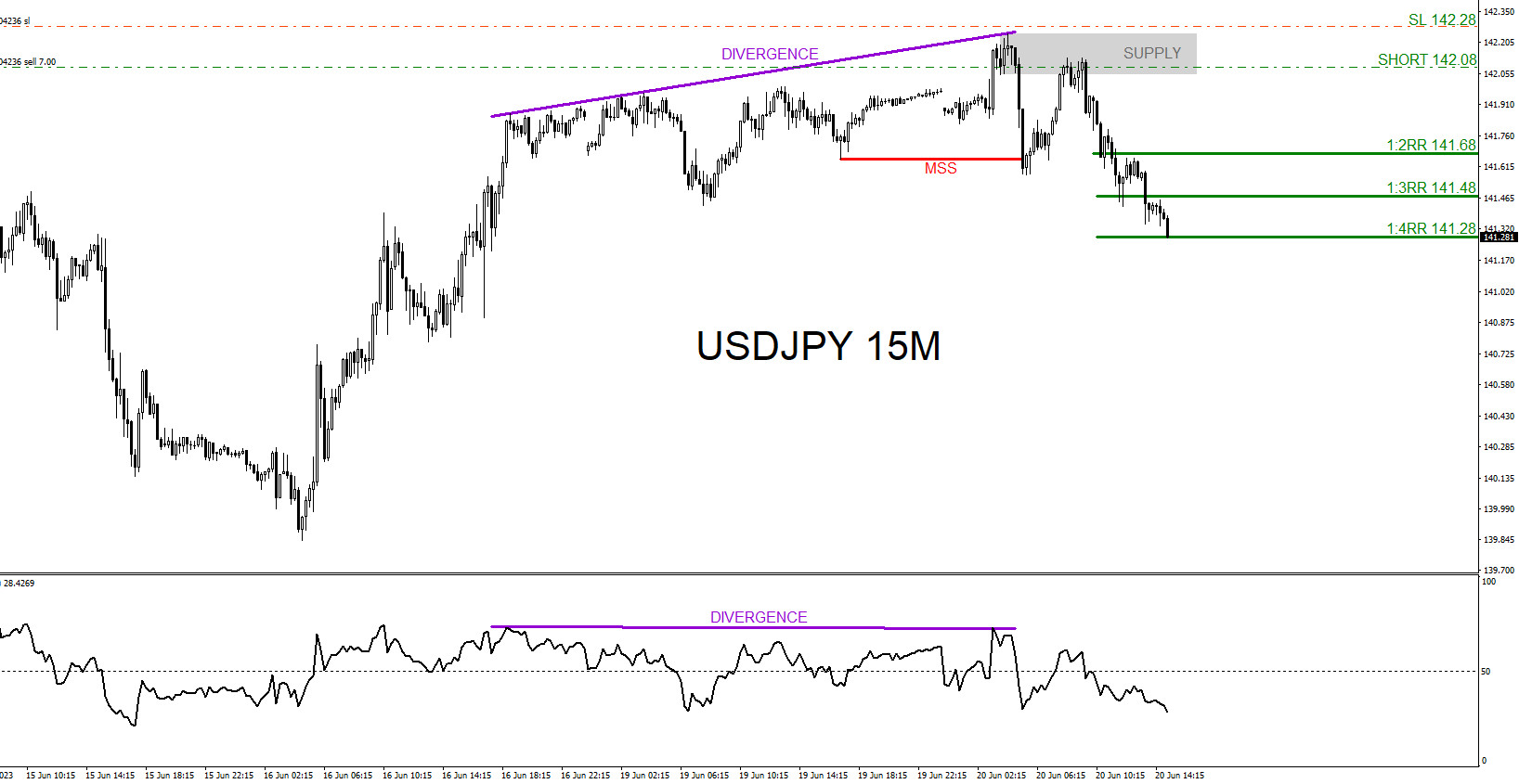 On June 20 2023 I posted on social media @AidanFX ” USDJPY : For now as long as price stays below 142.25 will be watching for sells for another push lower towards the 141.68 – 141.48 area.”