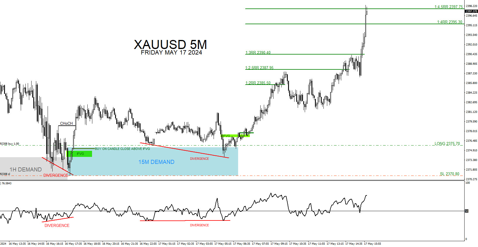 XAUUSD 5 Minute Chart May 17 2024