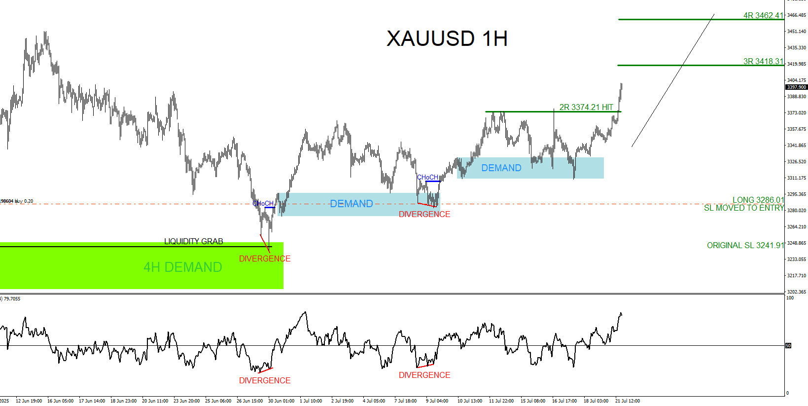 XAUUSD 1 Hour Chart July 21 2025