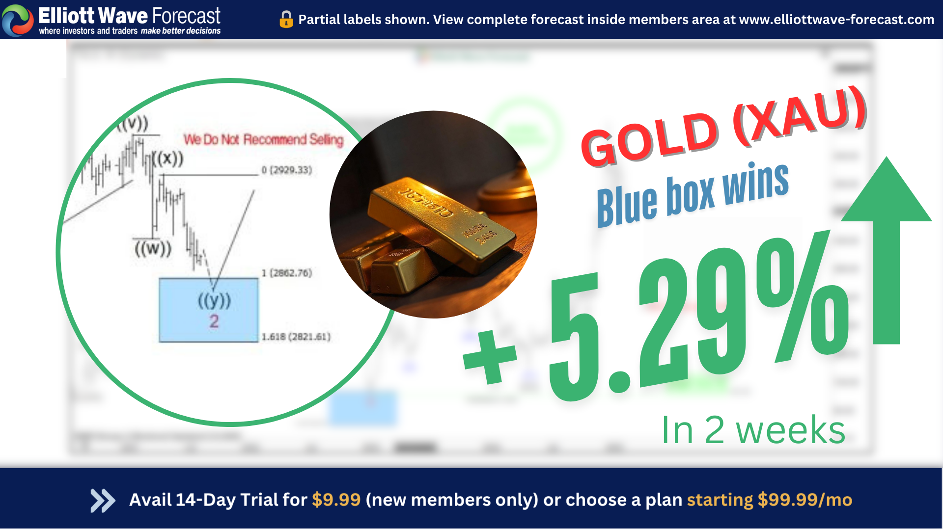 BlueBox Wins: We take a look at Gold (XAUUSD) pull back into a blue box after a double three correction. This was followed by astrong reaction to a new high after buyers entered in the blue box as expected. Gold rallied $150+ within 2 weeks of reaching the blue box. Let’s take a look at Before and After charts of the reaction from the blue box.