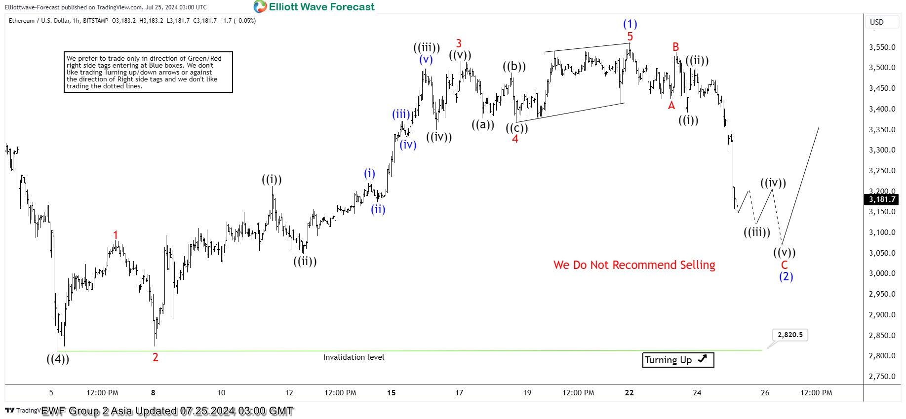Elliott Wave Intraday Analysis: Ethereum (ETHUSD) Pullback In Progress