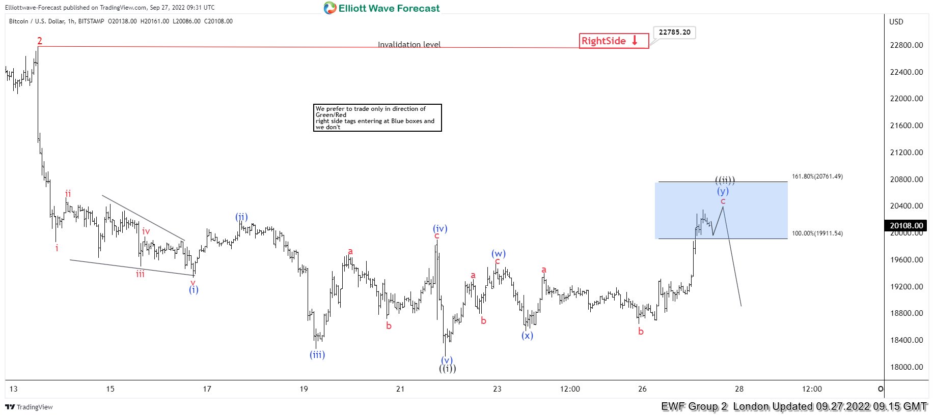 Bitcoin Reacting Lower From Elliott Wave Blue Box Area