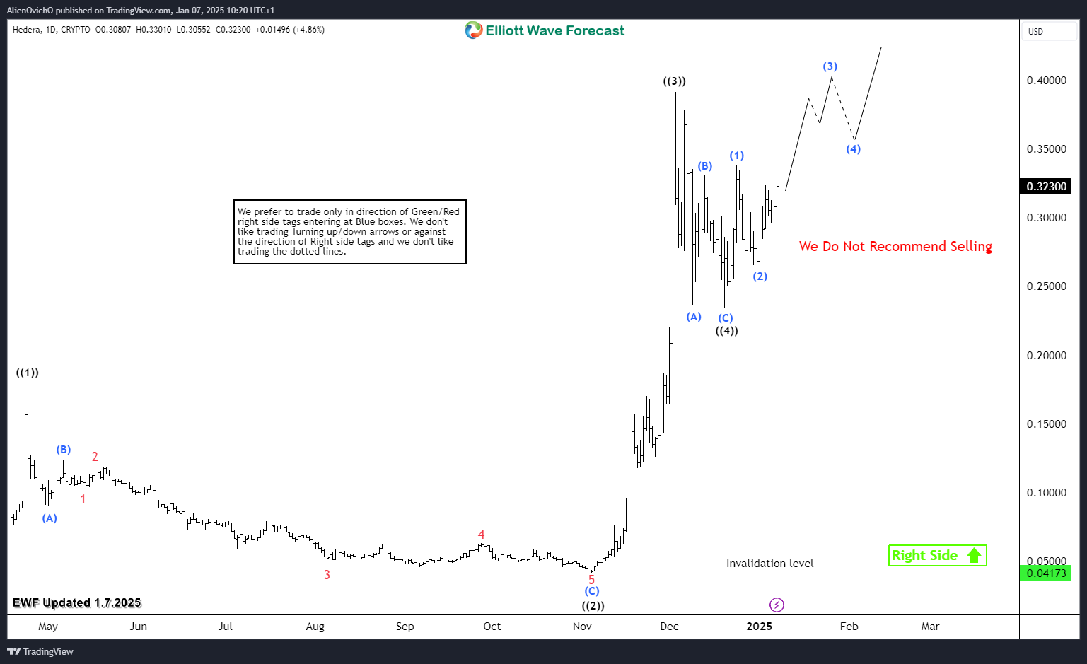 Hedera HBAR Looking To Break Above $0.4 in wave ((5))