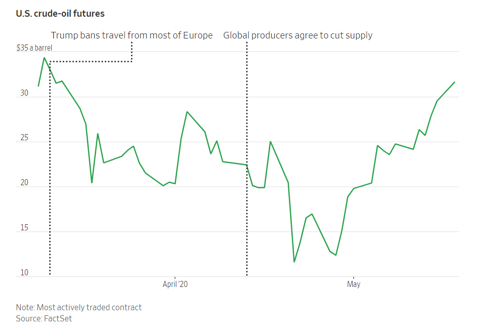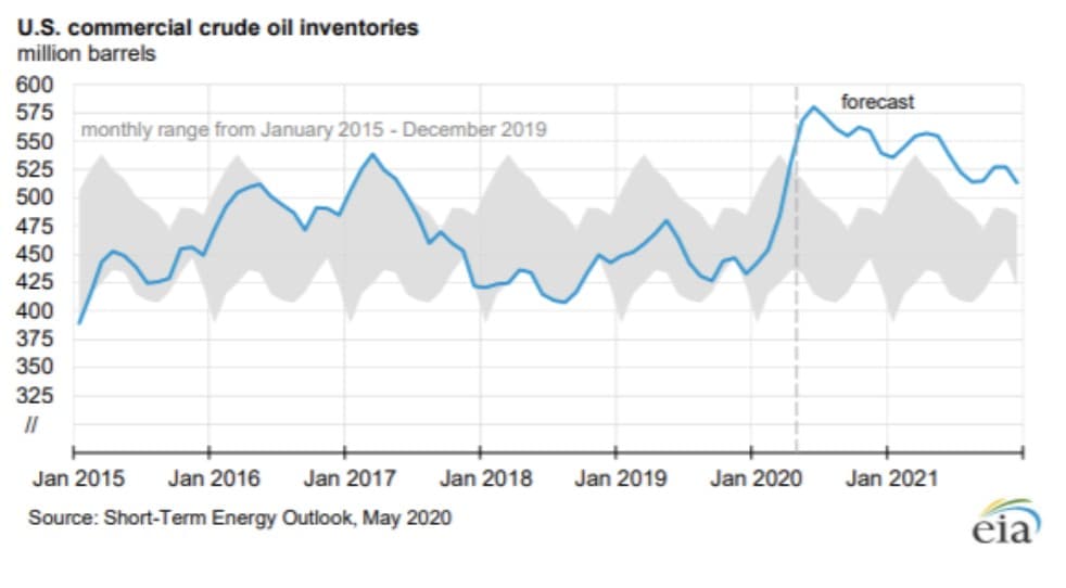 Crude Oil prices are staging impressive comeback after last month’s collapse to -$30. Sentiment in Oil has vastly improved in the past few weeks. Hopes of the supply cut as well as demand rebound help to support oil. China’s oil demand has come back to the pre-Covid 19 level at 13 million barrels/day. Crude storage report on Tuesday turns out to be not as bad as the original forecast. The projection by analysts is for an inventory build of 1.151 million barrels. The EIA forecast was for a slight build but it turned out to be an actual decline of 0.7 million barrels. This fuels the bets that the worst of the industry’s storage crisis has passed.