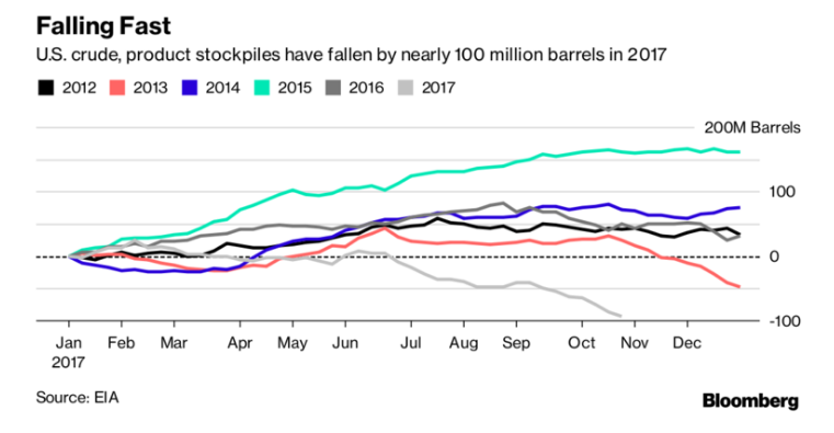 If OPEC can extend the production cuts through the remainder of 2018 in their next meeting, the bullish momentum in Oil could perhaps continue into 2018. With the market already tightening, an extension in the production quotas could further reduce any remaining excess supply and support oil spot price.