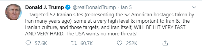 The geopolitical conflict also prompted global stock markets to pullback from the recent rally. Traditional safe haven instrument such as Gold and government bonds enjoy newly-found bid after the pause since summer of 2019. Over the weekend, Iran said it would no longer be bound by uranium enrichment restriction in 2015’s nuclear deal. The U.S State Department has said there’s a heightened risk of missile attacks near military bases and energy facilities in Saudi Arabia. Oil continues the volatile swing as President Trump tweeted on the weekend that the US is ready to strike 52 Iranian targets in disproportionate manner if Tehran retaliates.