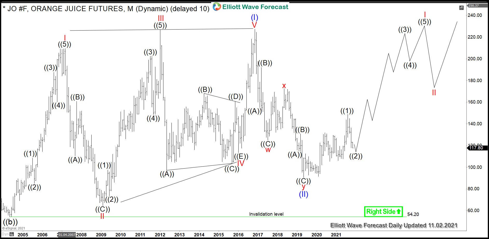 For 2021-2030, the expectations are to break to the new all-time highs. The target for wave (III) will be 264.00-371.20 area. From current levels, the orange juice can, therefore, double to tripple in price.