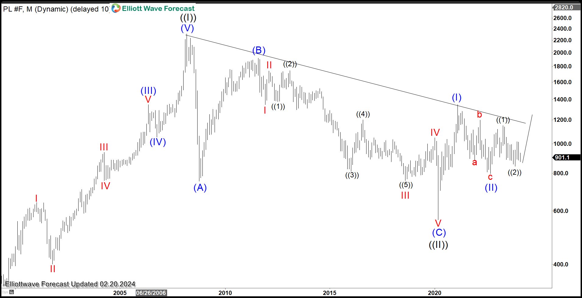 Platinum (PL) Monthly Elliott Wave Chart