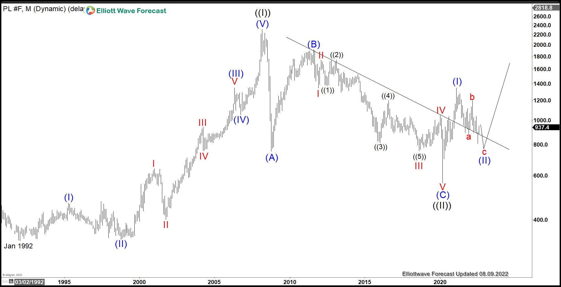 Platinum Monthly Elliott Wave Chart