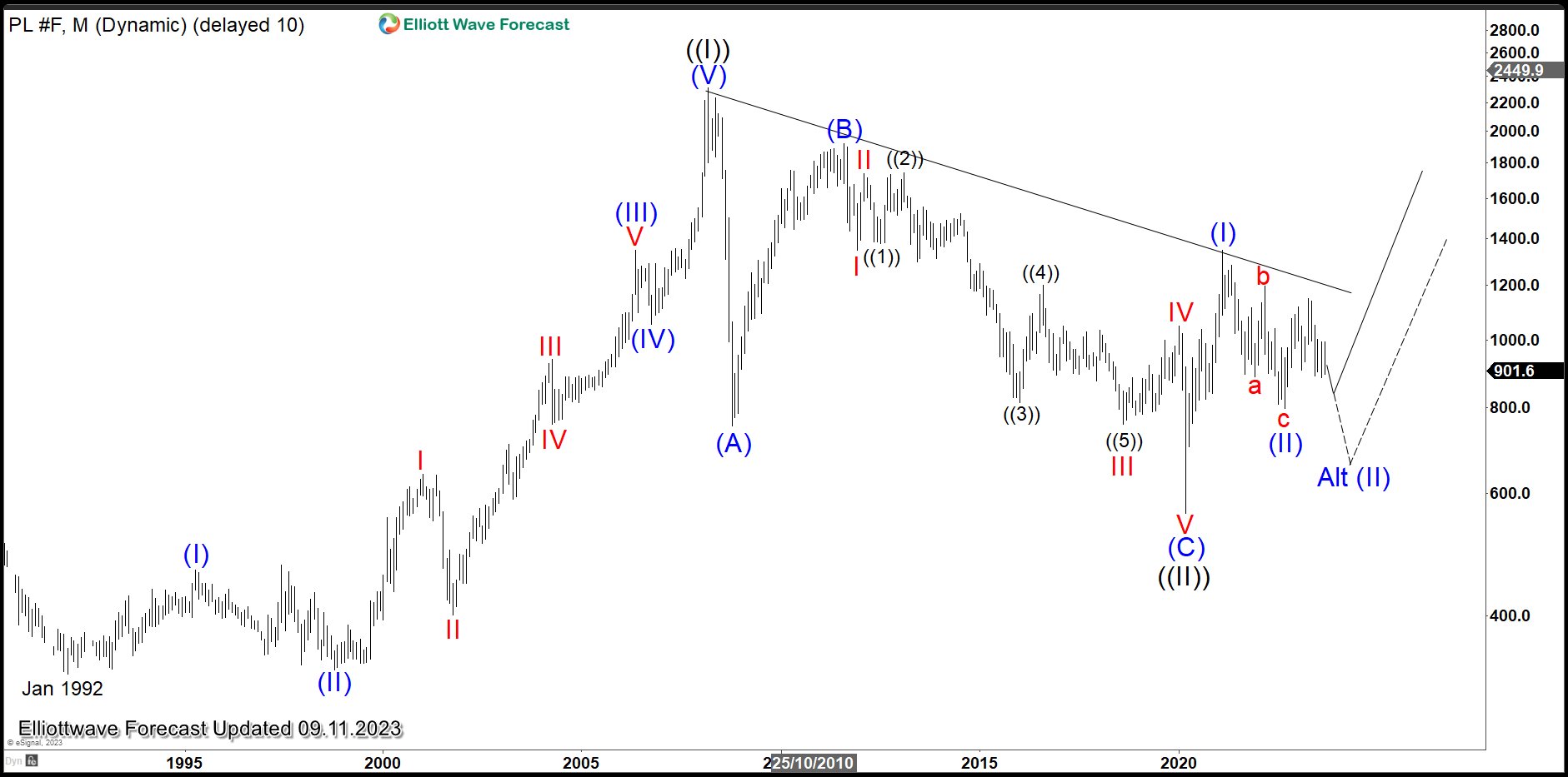 Platinum (PL) Monthly Elliott Wave Chart