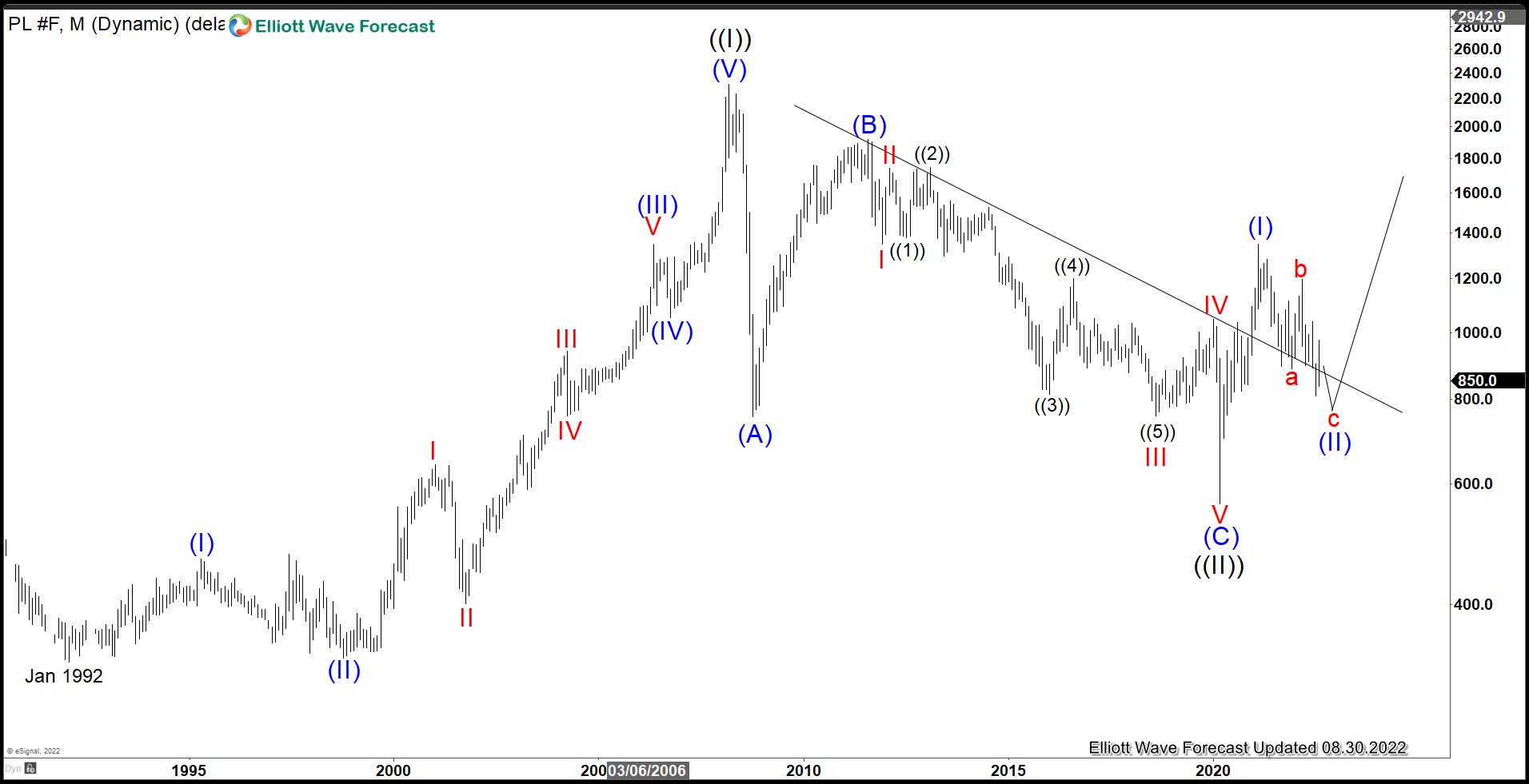 Platinum Monthly Elliott Wave Chart
