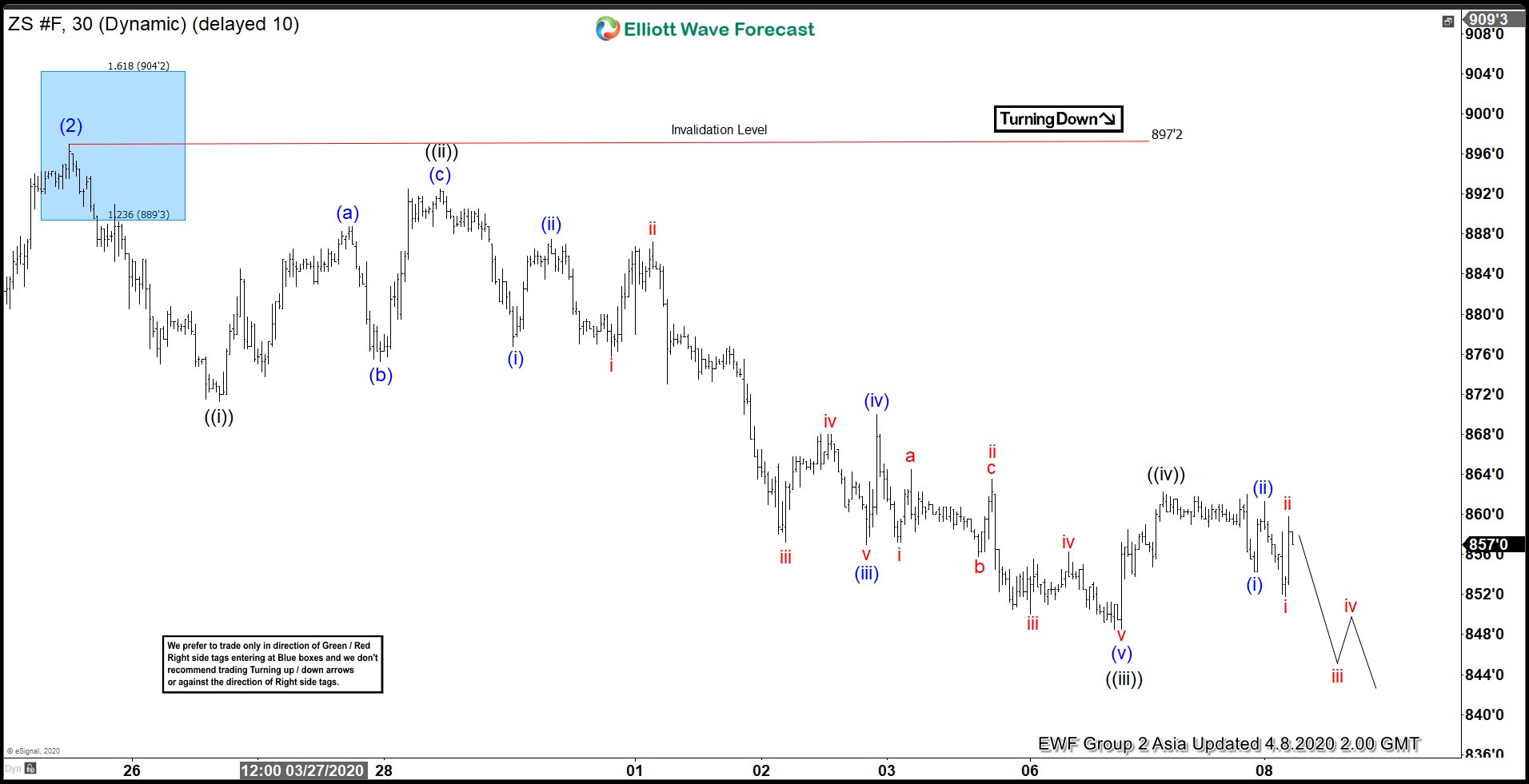 Soybean Elliott Wave View: Reacting Lower From Blue Box Area