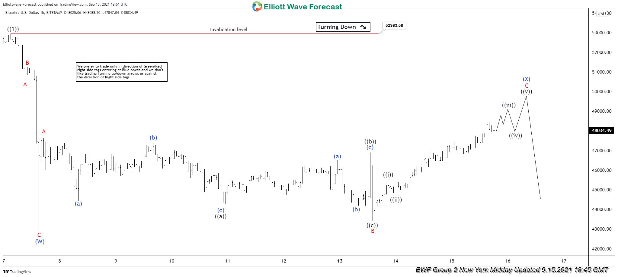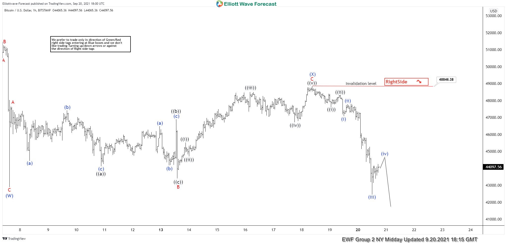 Bitcoin ( $BTCUSD ) 1 Hour Elliott Wave Analysis 9.15.2021