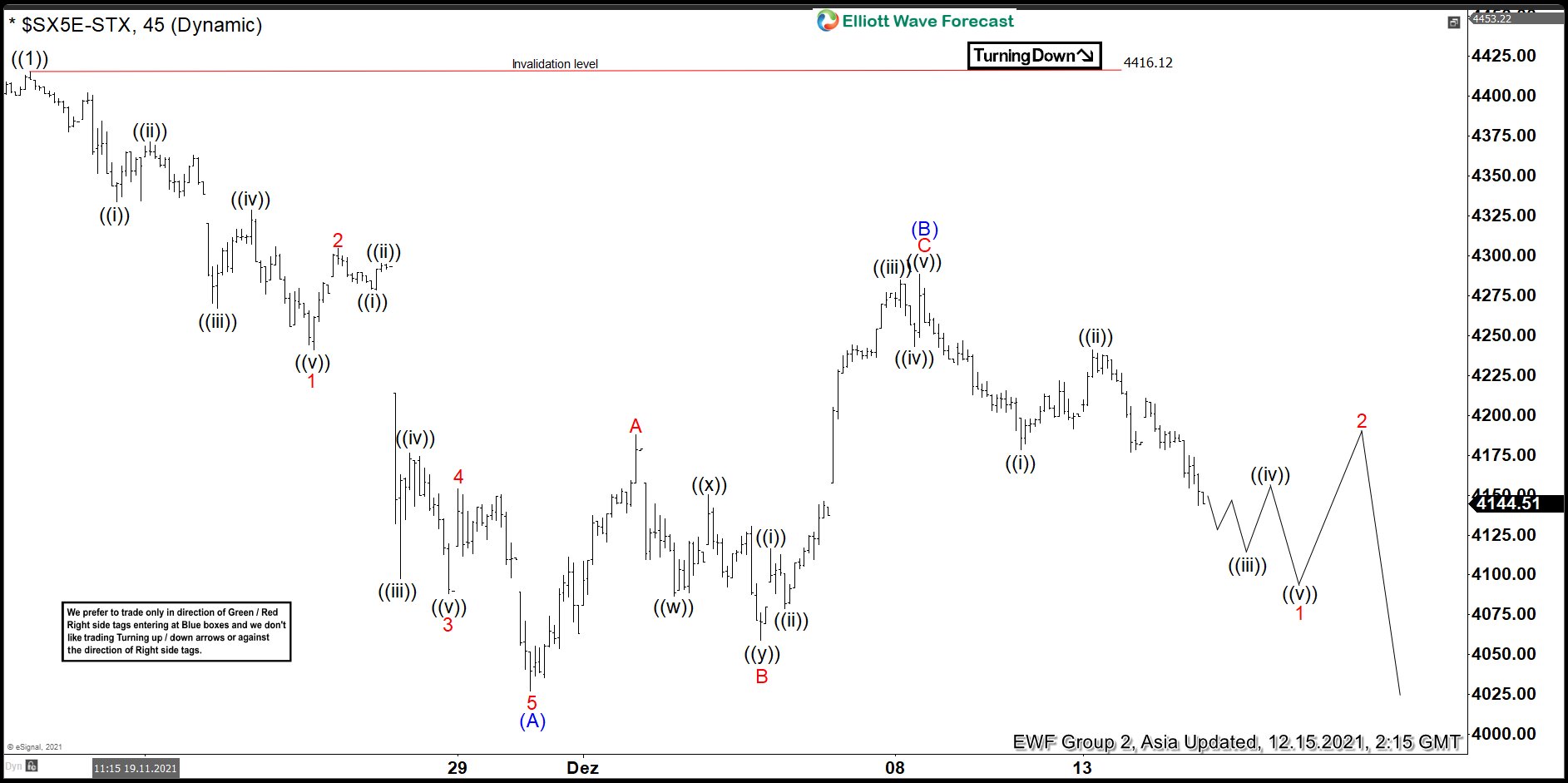 Eurostoxx 1 Hour Elliott Wave Analysis 12.15.2021