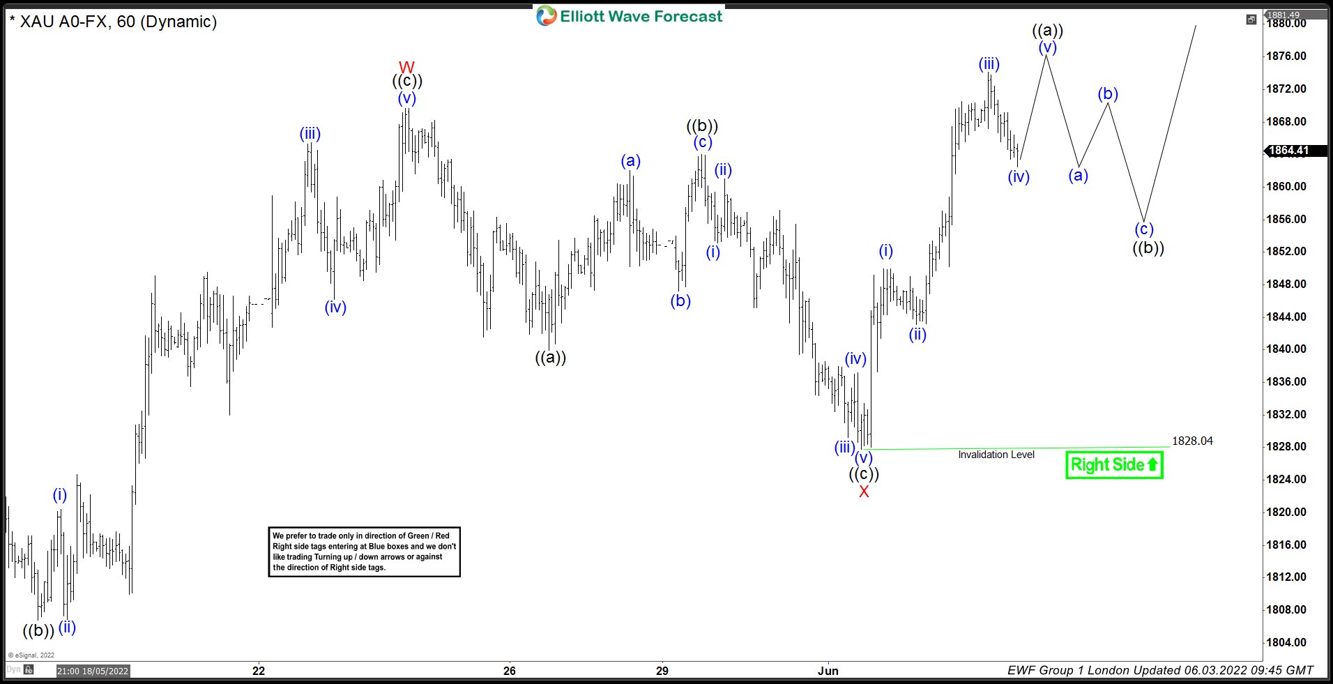 GOLD has started giving us reaction from the marked zone and we count X red connector completed at 1827.7 low. Now, we need to see further separation up from the mentioned level and break above W red high : 05/24 to confirm next leg up is in progress.