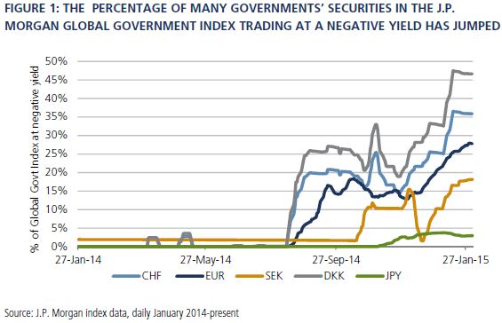 3) Active monetary policy by central banks around the world such as bonds purchase (quantitative easing) and negative interest rate have created distortion in the bond market. Chart below from J.P. Morgan is showing a rising percentage of bonds with negative yield. While gold does not provide any interest / yield as an investment vehicle, owning gold now at least does not cost any interest compared to bonds.
