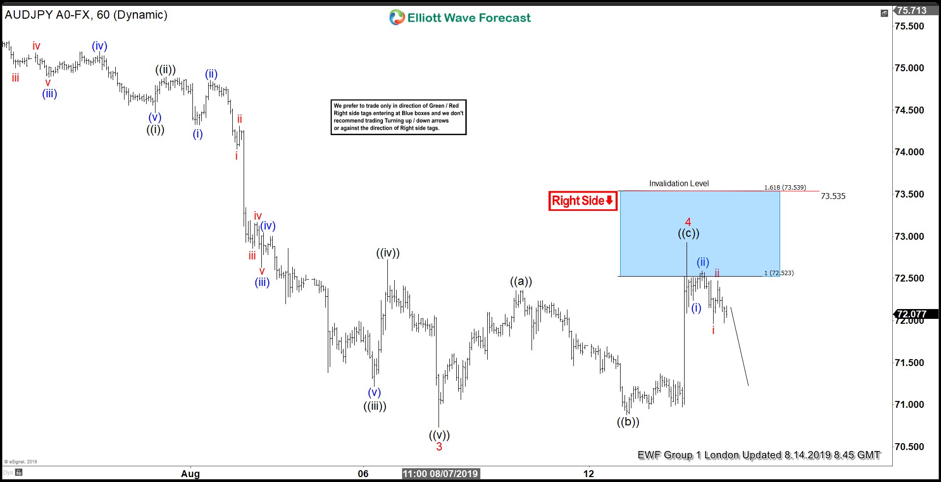 AUDJPY 1 Hour Elliott Wave Analysis 8.14.2019