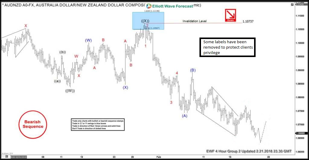 In this Technical blog, we are going to take a quick look at the past Elliott wave chart performance of AUDNZD. Which we presented to our clients. We are going to explain the structure and the forecast. As our members know, we were pointing out that AUDNZD is having lower low bearish sequence from October 24.2017 peak. We advised our members to avoid buying it and keep selling the bounces in 3, 7 or 11 swings as the mentioned cycle from the October 24.2017 peak was incomplete to the downside.