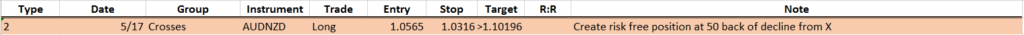 In May 17th Live Trading Room, we issued a trading idea for AUDNZD . The trade was to buy AUDNZD at 1.0565 and the entry was filled on May 25th. Below is the trading journal we presented to members on May 17th Live Trading Room
