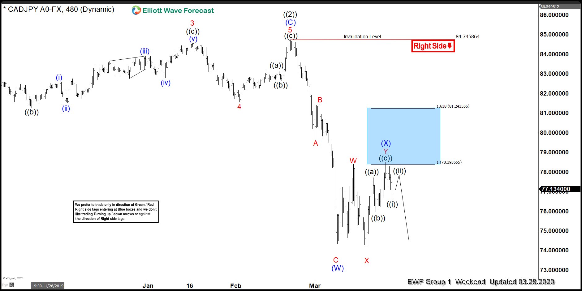 CADJPY 3.28.20 4 Hour Weekend Elliott Wave Update