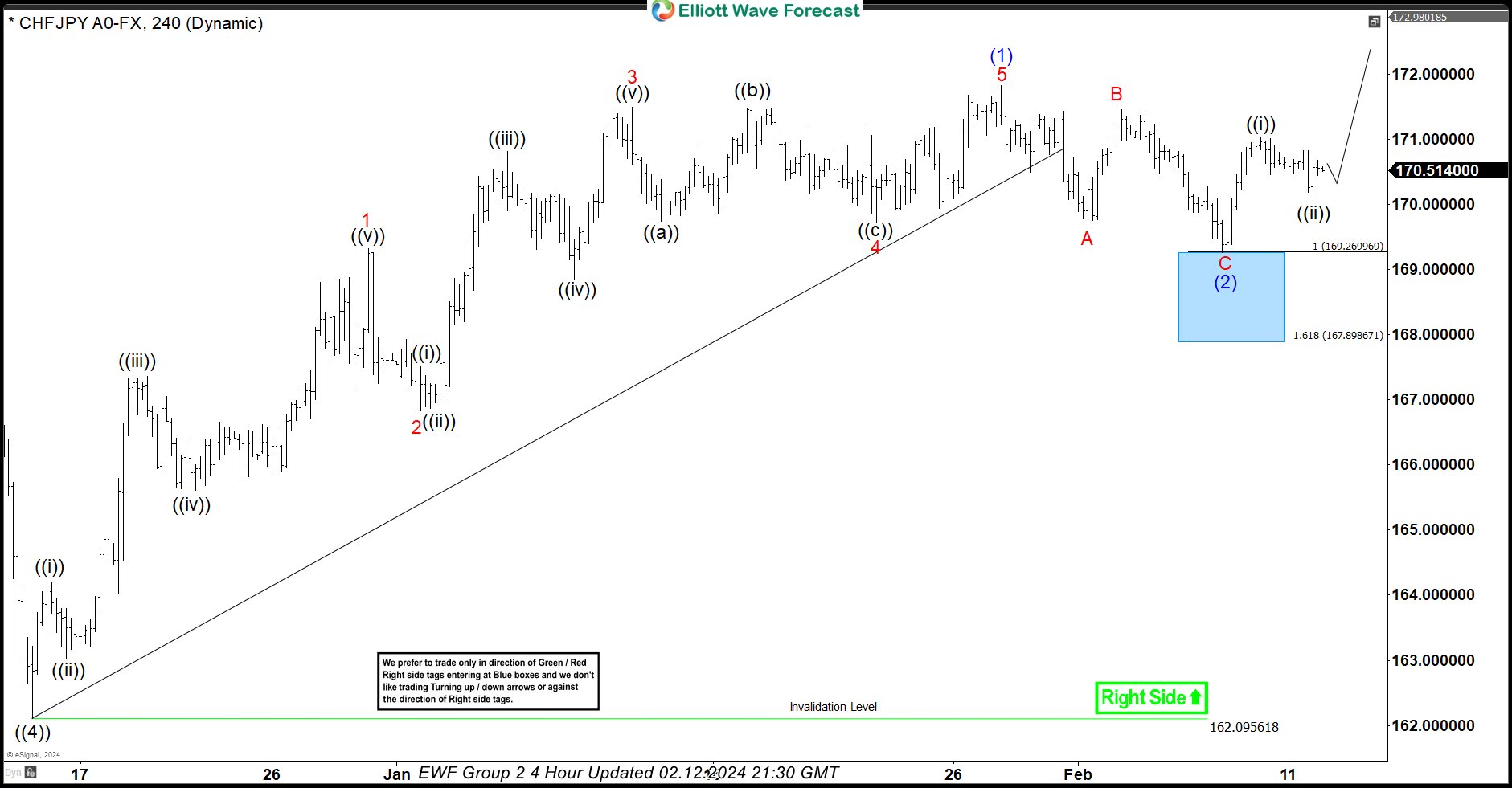 CHFJPY Latest 4-Hour Elliott Wave Chart From 2.12.2024