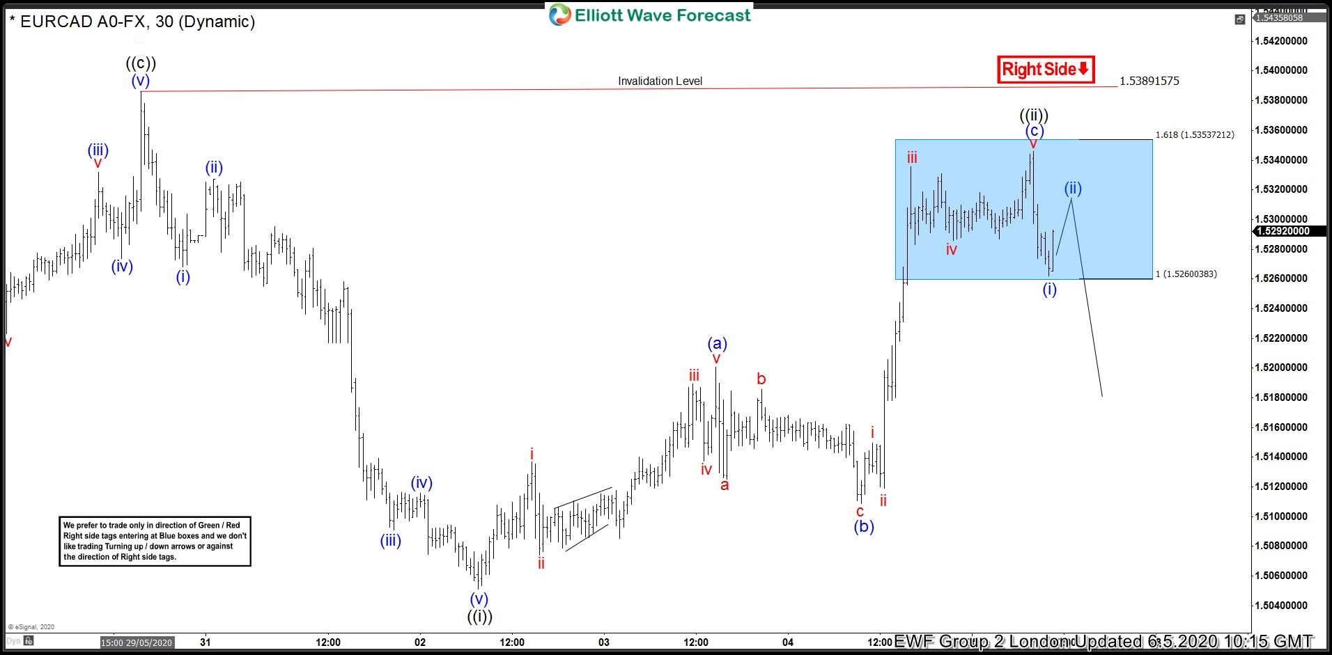 Hello fellow traders. In this technical blog we’re going to take a quick look at the Elliott Wave charts of EURCAD. As our members know, recently the pair gave us 3 waves bounce against the 1.53878 peak. Recovery unfolded as Elliott Wave Zig Zag pattern (a)(b)(c). Once the price reached equal legs (a)-(b) we knew that sellers will appear there for a 3 wave pull back at least. In the further text we are going to explain the Elliott Wave Pattern and the Forecast.