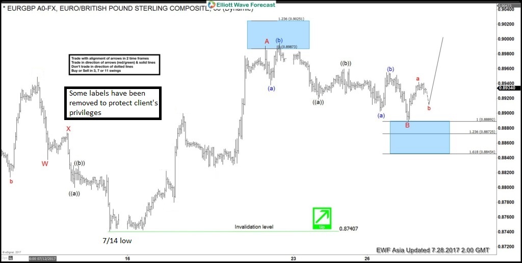 In this Technical blog we are going to take a quick look at the past 1 hour Elliott Wave performance of EURGBP cycle from July 14 low, which we presented to our clients at sifaha.com. We are going to explain the structure from that cycle.