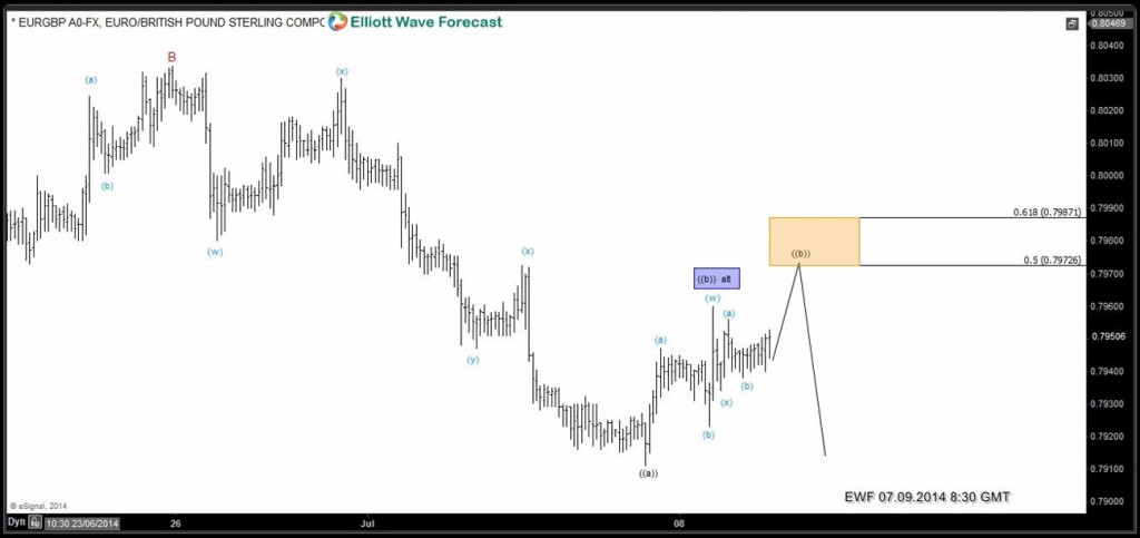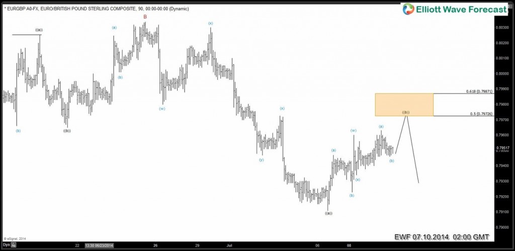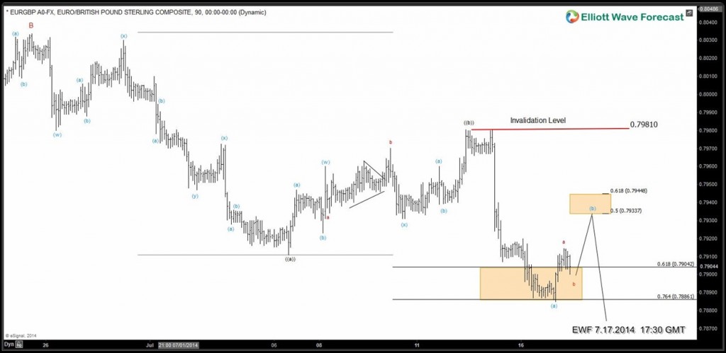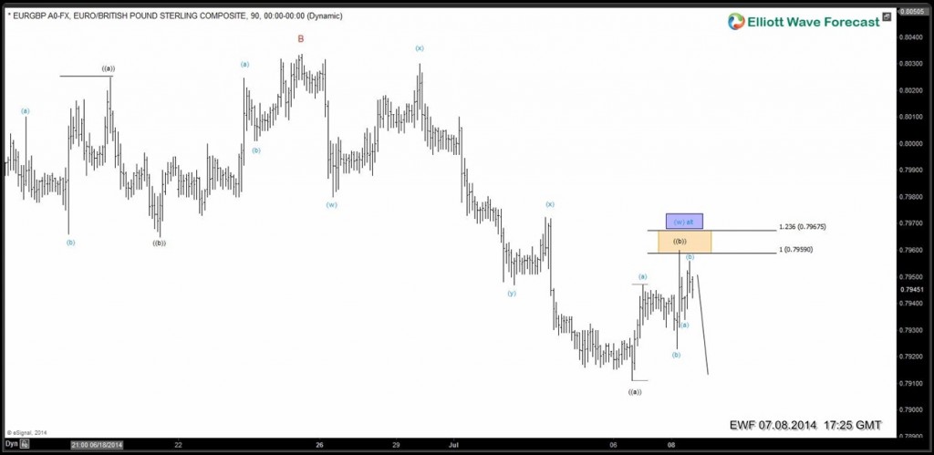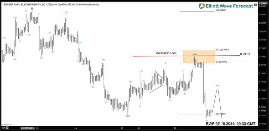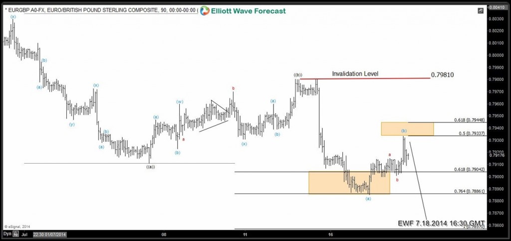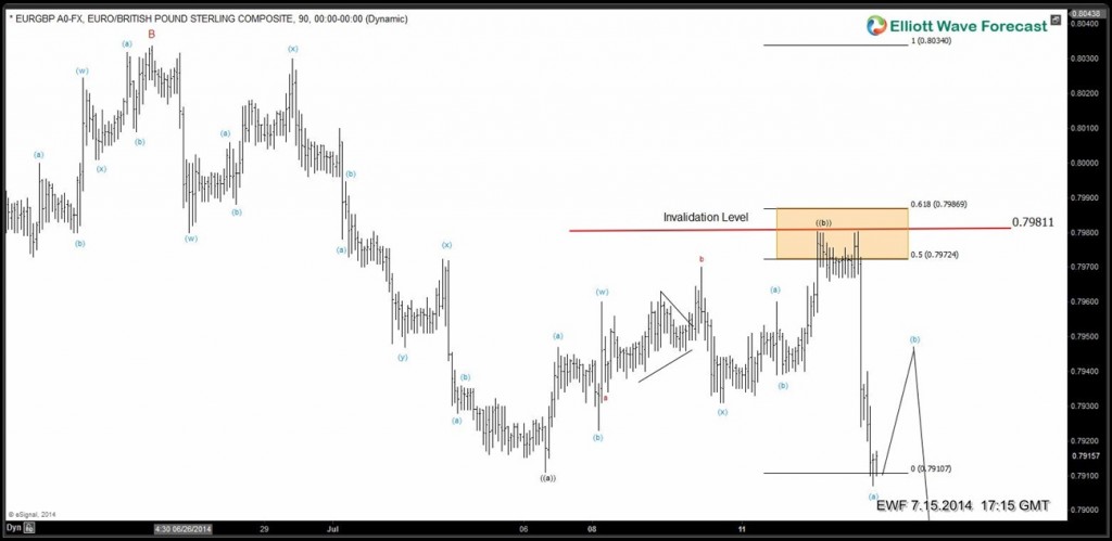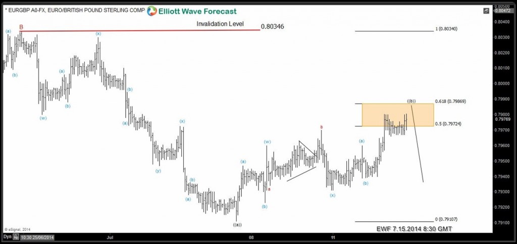 EURGBP cycles have been clearly negative since February 25/2013. We, at EWF, always advise our members to trade with the trend and not against it. The charts below clearly shows how we continue advising our members that EURGBP will continue with the down trend. No matter how many times EURGBP kept creeping higher we continued telling our members, through webinars, charts, 24H chatroom, and daily reports, that as long as price did not break above 0.80346 (Invalidation level) the smart trade would be to the shortside. Let’s take a look at some Elliott Wave updated charts from members area below