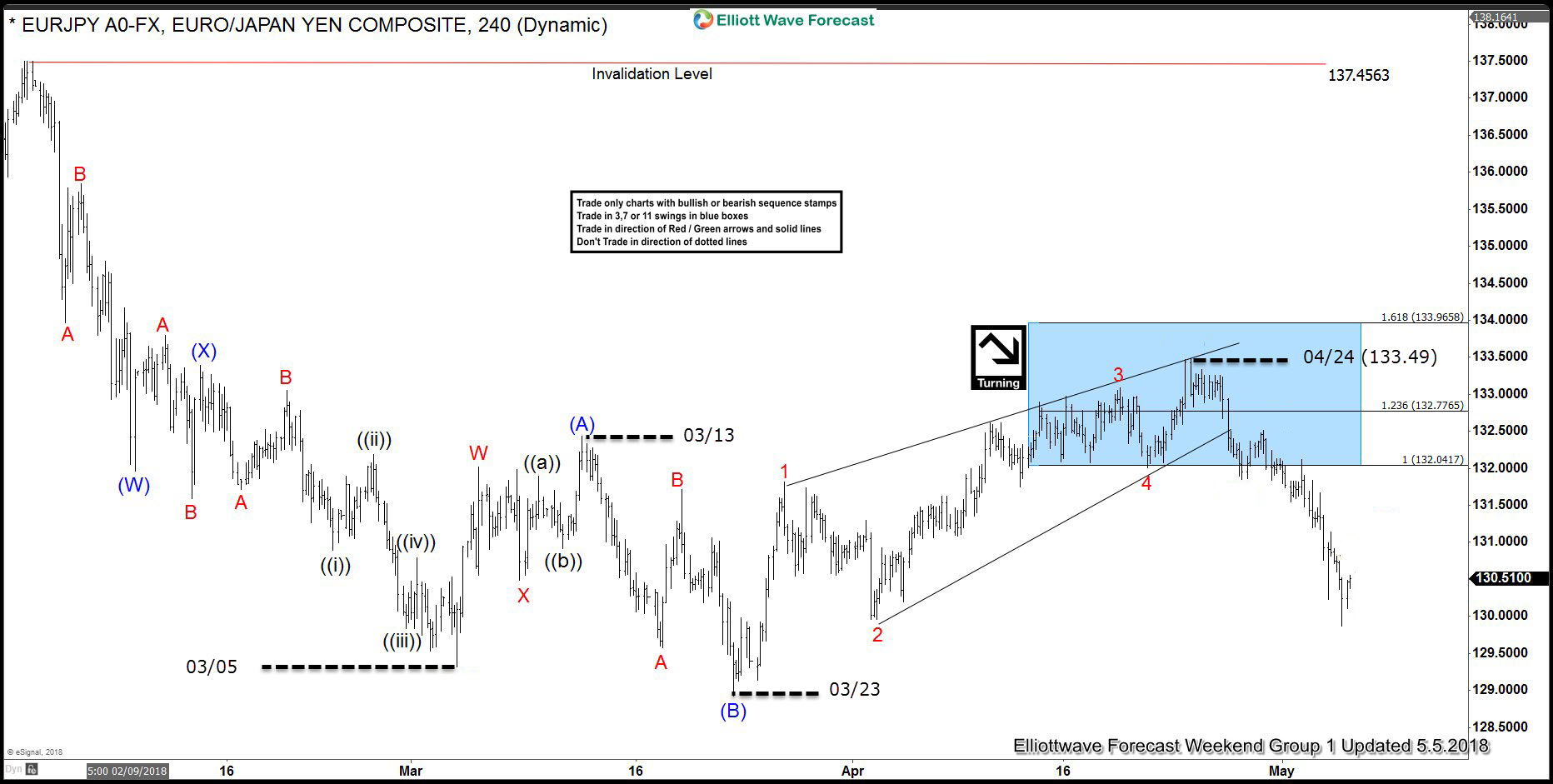 EURJPY Elliott Wave 4 Hour Chart 4.18.2018