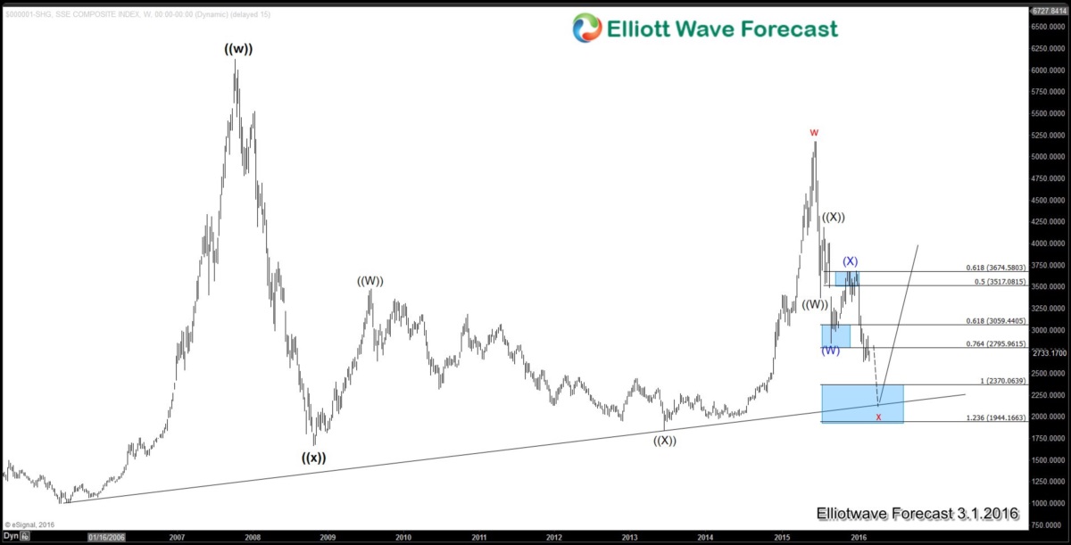 Weekly chart of Shanghai Composite Index above is showing an incomplete 5 swing sequence from 2015 peak and more downside is expected at least towards 1944 – 2370 area in the higher degree time frame.