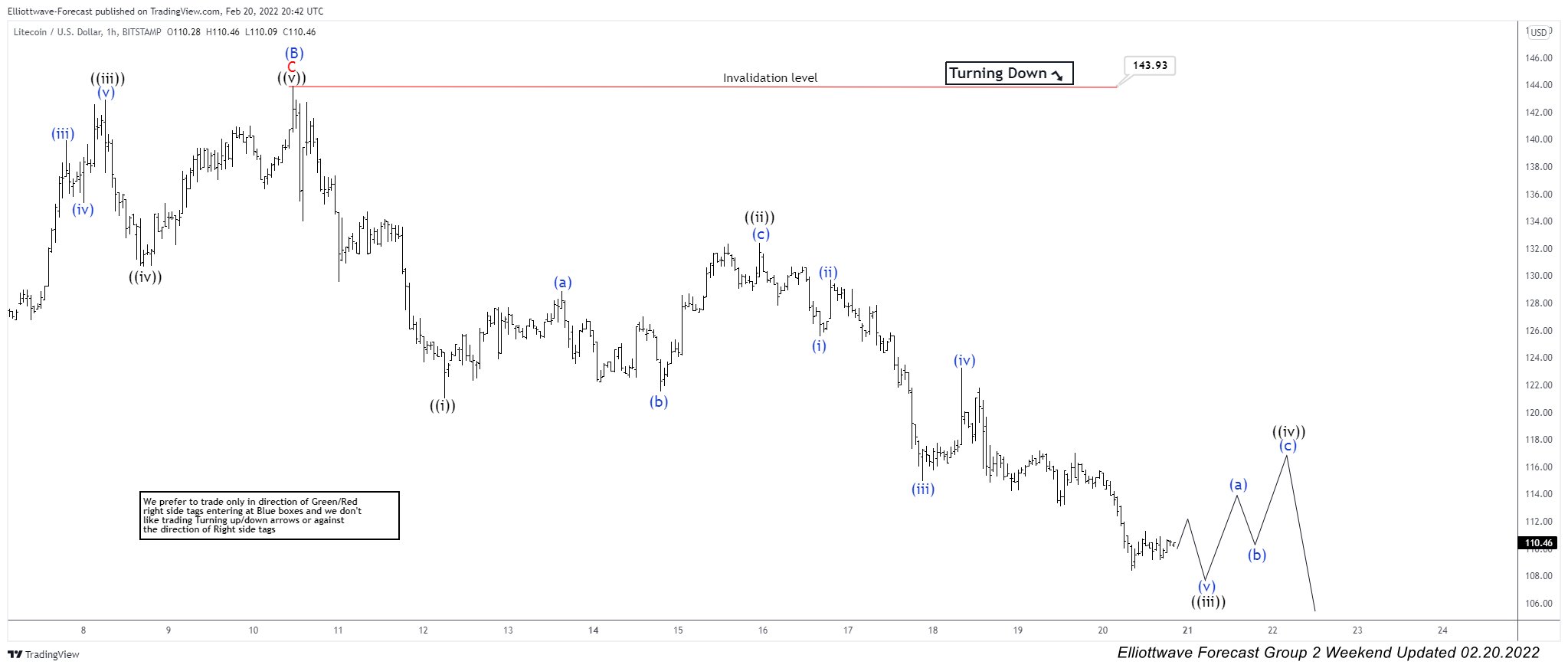 LTCUSD 1 Hour Elliott Wave Analysis – 16 February, 2022