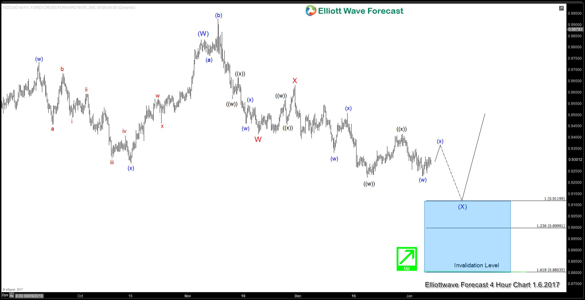 The 4 hour chart suggests that while pair stays below wave ((x)) at 0.941, and more importantly below wave X at 0.963, pair has scope to continue the move lower in wave (X) towards 0.9 – 0.912 area before the next bullish leg starts or at least a 3 waves bounce can be seen. We expect buyers to appear in the 0.9 – 0.912 area for either a new bullish cycle or at least a 3 waves bounce. Ideally pullback stays above 0.88 (1.618 ext).
