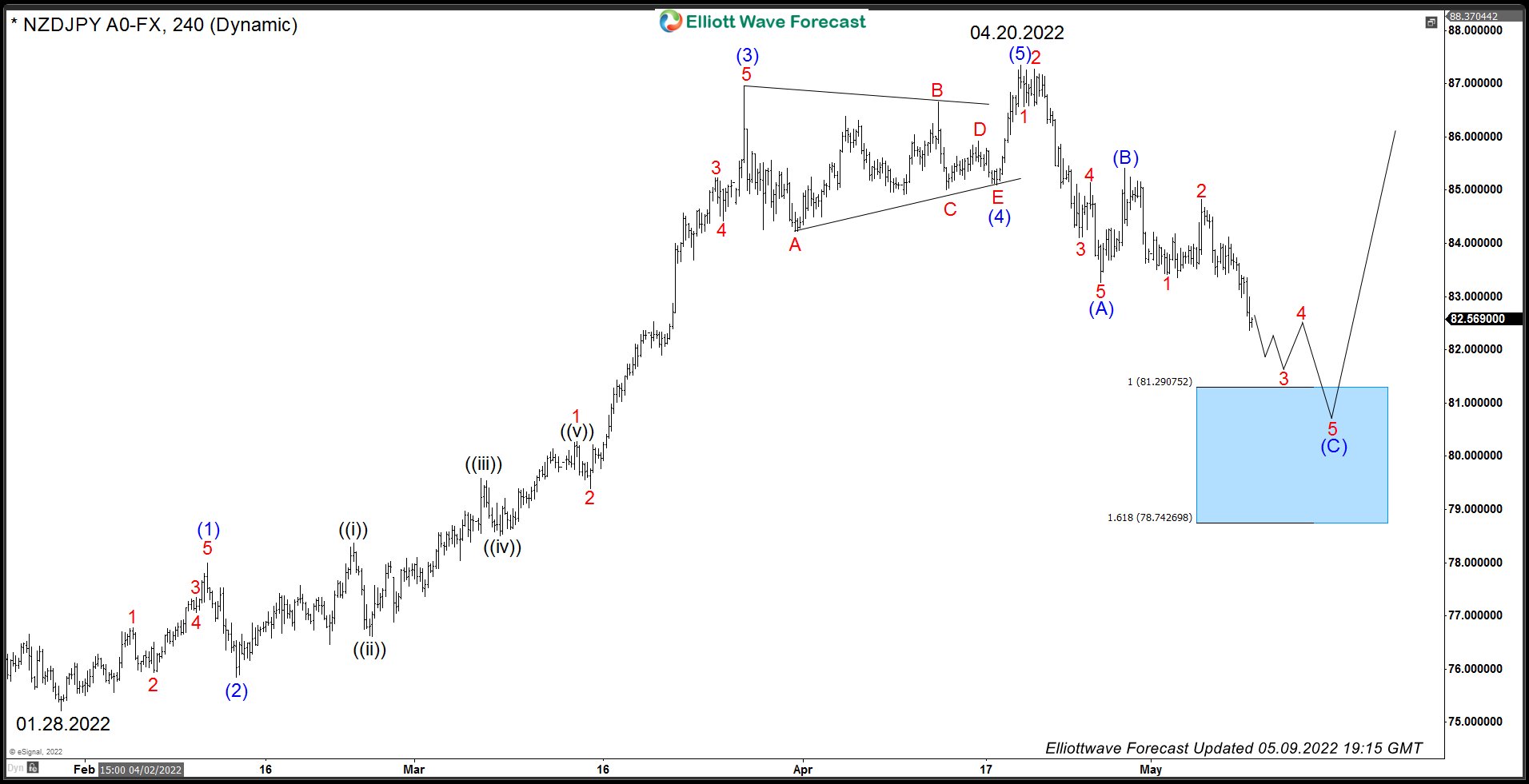 NZDJPY: Elliott Wave Structure Down from April 20, 2022 Peak
