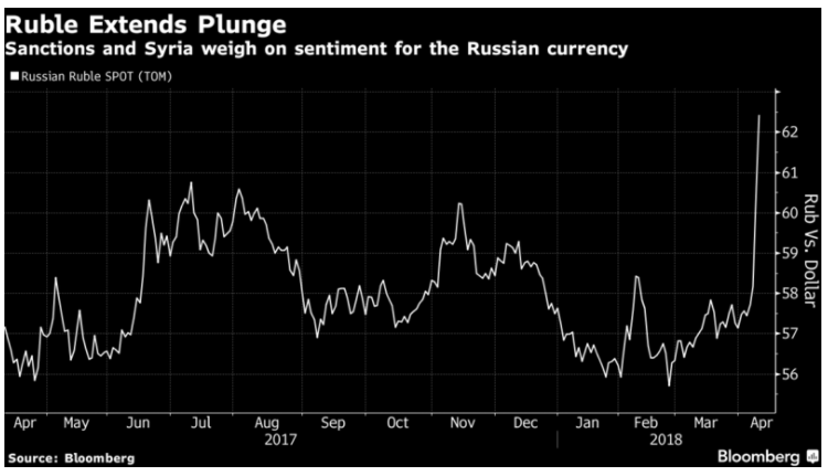 The sanctions not only hurt the Ruble, but it also hurts the stock and bond markets as well. Benchmark MOEX Russia Index plunged by 8.7% on Monday following the sanction. Rusal, a Russian aluminum producer targeted by the sanctions fell by 50% in the Hong Kong stock exchange. Yields for the ruble-denominated bonds sky rocketed on the news of the new U.S. sanctions.