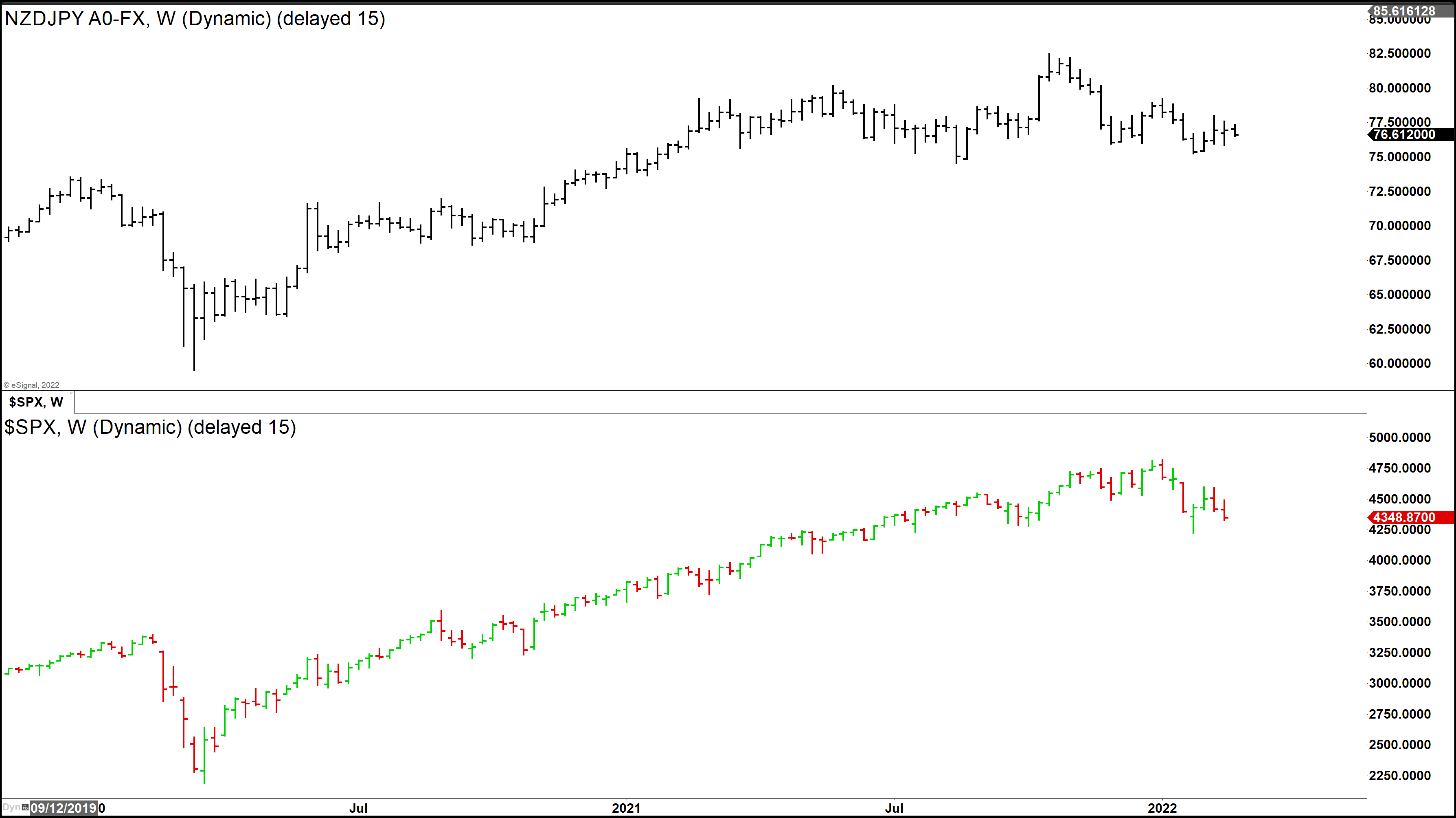 As per shown below, these two tend to negatively correlate, when the S&P500 appreciates, yen depreciates simultaneously against other pairs, especially commodity risk on pairs. The below is a prime example, you can see how these both assets climbed up to October 2022. That’s when the stock market started to correct. We can see yen then built its strength against the New Zealand dollar.
