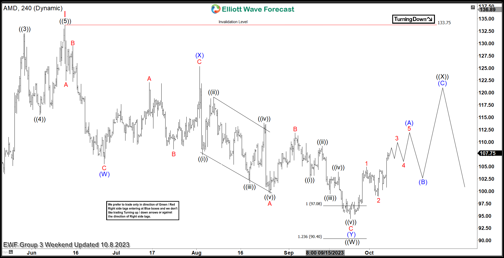 $AMD 4H Elliott Wave Chart 9.17.2023: