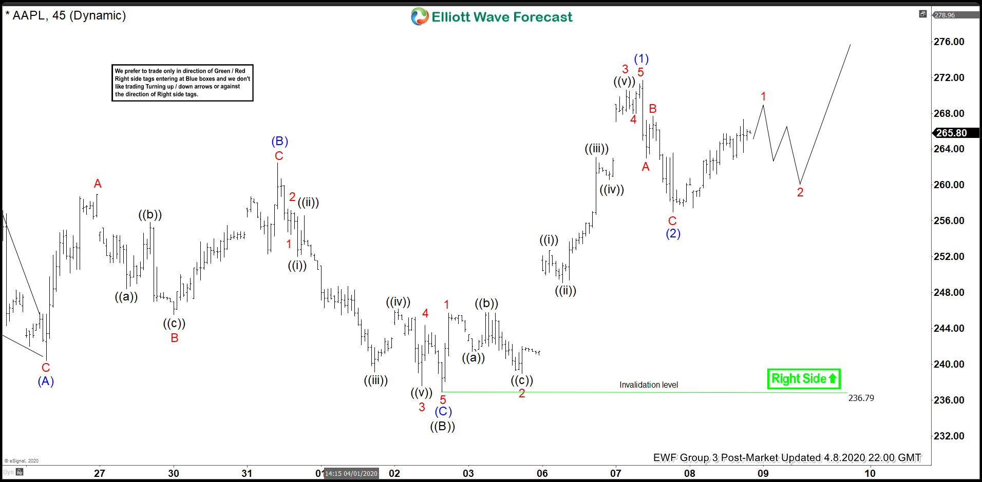 Apple 4 Hour Elliott Wave Analysis 4.6.2020