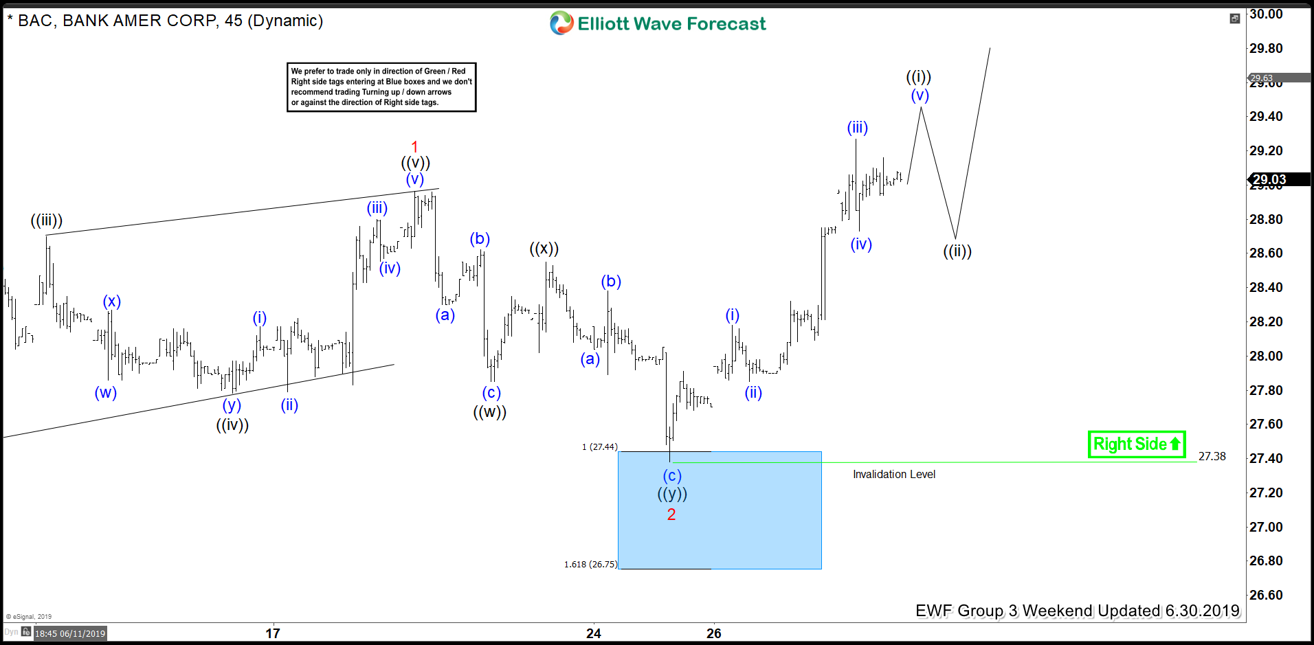 BAC Elliott Wave View: Found Buyers in Blue Box and Rallied