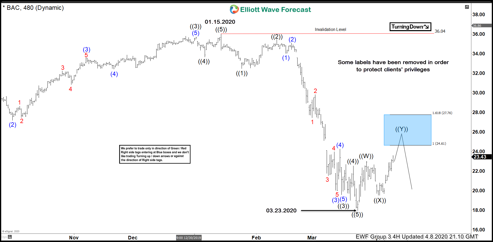 BAC Elliott Wave 4 Hour Chart 4.23.2020