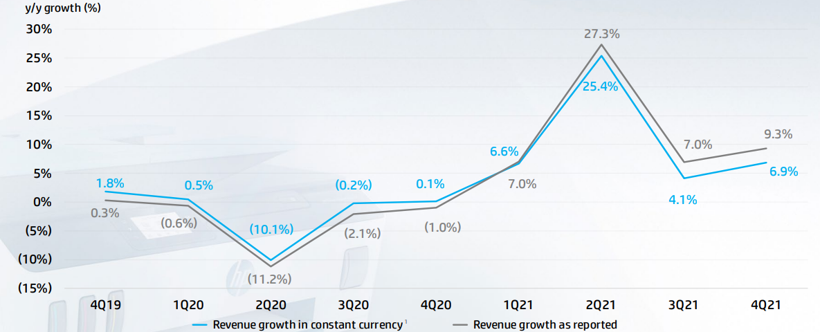 HP posted its yearly earnings report. The company reported: