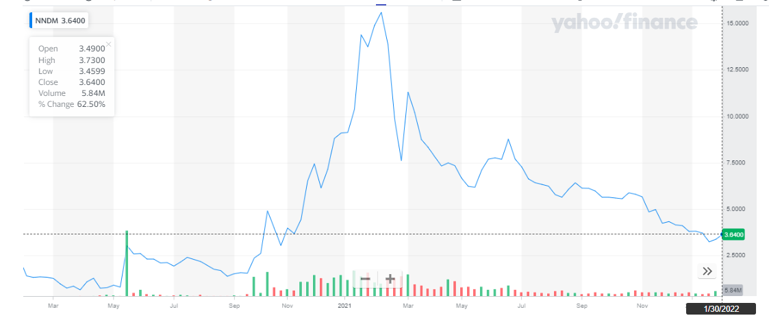 Nano Dimension has a market capitalization of around $864 million. Its share is trading at a price of $3.37. the company stock peaked during the first quarter of 2021 at a price of $15.6.
