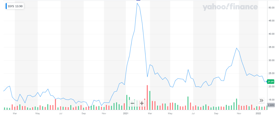Stratasys has a market capitalization of around $1.434 billion. Its share is trading at $21.91. The share experienced a huge spike in price at the start of 2021. During the year 2021, the share appreciated by approx. 6% from a price of $20.72 to $21.91.